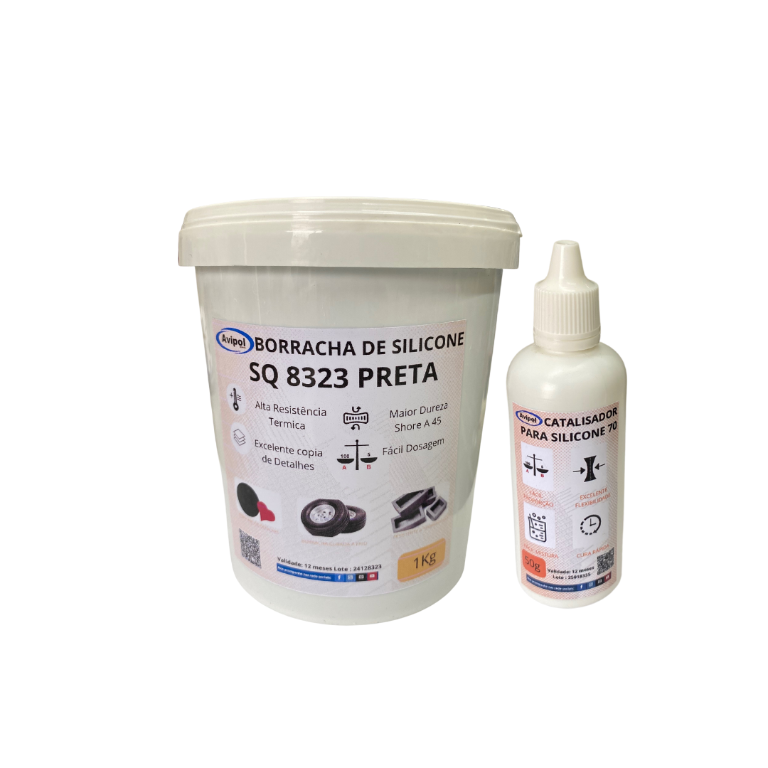 SQ 8323 é um silicone líquido curável a frio, utilizado para confecção de moldes e peças nos mais variados segmentos de mercado, tais como artesanato, moldes para fundição de metais de baixa temperatura, encapsulamentos, etc.
